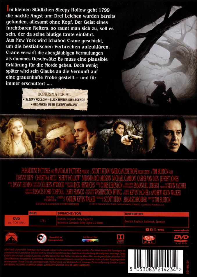 Brr... Das kleine Nest Sleepy Hollow ist ein kalter Ort, umgeben von einem mysteriösen Wald. Nacht für Nacht kommt der kopflose Reiter und enthauptet unschuldige Einwohner. Zum Glück gibt es den mutigen Constable Ichabod Crane aus New York! Mit seiner Hilfe werden wir den blutrünstigen und brutalen untoten Unhold sicherlich schnell zur Strecke bringen! Und das ganze blutige Vergnügen kann man ungeschnitten sogar auf 2 DVDs mitverfolgen... Zugreifen (aber bitte nicht den Kopf verlieren, ja?)!