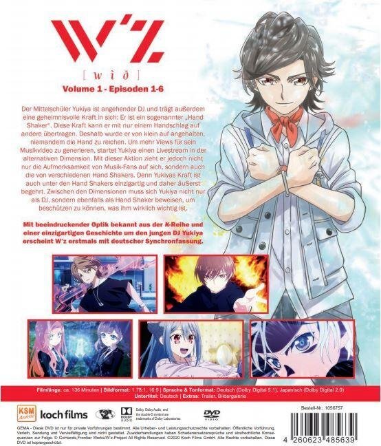 Mit beeindruckender Optik bekannt aus der K-Reihe und einer einzigartigen Geschichte um den jungen DJ Yukiya, erscheint W’z erstmals mit deutscher Synchronfassung. Volume 1 enthält die Episoden 1-6.