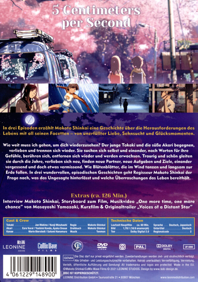 | Originaltitel | Byôsoku 5 senchimêtoru (Japanisch) |