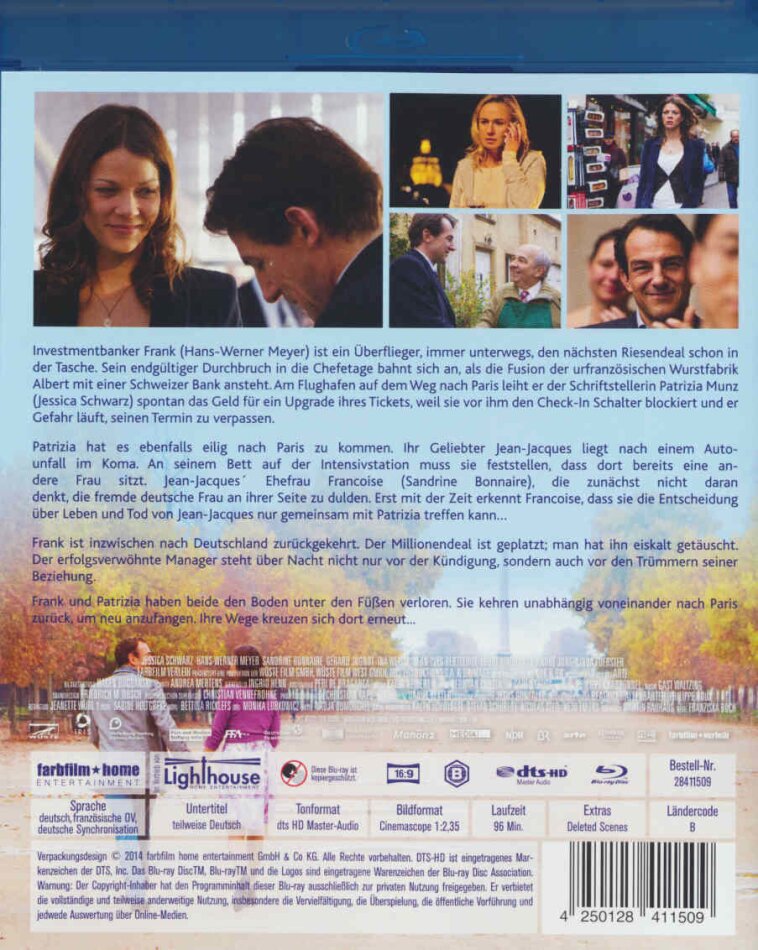 Investmentbanker Frank ist ein Überflieger, immer unterwegs, den nächsten Riesendeal schon in der Aktentasche. Der Job seines Lebens, der ihm den endgültigen Durchbruch in die Chefetage bringen würde, bahnt sich an, als die Fusion der urfranzösischen Wurstfabrik Albert mit einer Schweizer Bank ansteht. Am Flughafen auf dem Weg nach Paris leiht er der Schriftstellerin Patrizia Munz spontan das Geld für ein Upgrade ihres Tickets, weil sie vor ihm den Check-In Schalter blockiert und er Gefahr läuft, seinen Termin zu verpassen. Patrizia hat es ebenfalls eilig nach Paris zu kommen. Ihr Geliebter Jean-Jacques liegt nach einem Autounfall im Koma. An seinem Bett auf der Intensivstation muss sie feststellen, dass dort bereits eine andere Frau sitzt. Jean-Jacques´ Ehefrau Francoise, die zunächst nicht daran denkt, die fremde deutsche Frau an ihrer Seite zu dulden. Erst mit der Zeit erkennt Francoise, dass sie die Entscheidung über Leben und Tod von Jean-Jacques nur gemeinsam mit Patrizia treffen kann. Einer Verantwortung, der sich Patrizia jedoch nicht stellen will. Sie hat in Deutschland eine wilde Affäre mit einem anderen Mann angefangen, um der bitteren Realität zu entfliehen. Auch Frank ist nach Deutschland zurückgekehrt. Der Millionendeal ist geplatzt; man hat ihn eiskalt getäuscht. Der erfolgsverwöhnte Manager steht über Nacht nicht nur vor der Kündigung, sondern auch vor den Trümmern seines Lebens. Selbst für Patrizia, die ihm das geliehene Geld zurückgeschickt hat und ihn noch einmal kontaktiert, um seinen Rat zu suchen, ist er uninteressant. Frank und Patrizia haben den Boden unter den Füssen verloren. Beide kehren jedoch unabhängig voneinander nach Paris zurück, um neu anzufangen. Ihre Wege kreuzen sich dort erneut...