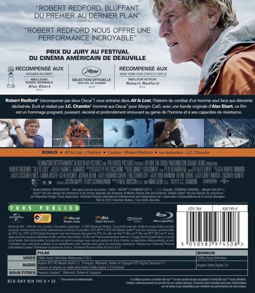 Je m'adresse donc à ceux-ci en les encourageant à regarder un film suffisamment courageux pour se passer de dialogues et d'autres personnages que l'unique à l'écran - allant plus loin, à cet effet, que Le Vieil Homme et la Mer avec Spencer Tracy - ainsi que des habituelles ficelles hollywoodiennes.