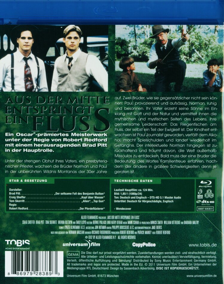 Ein wahnsinnig schöner Film von - aber zum Glück ohne - Robert Redford. Brad Pitt spielt seine erste Hauptrolle. Wer allerdings nicht so auf ruhige Filme (wie von Lasse Hallström) steht, sollte sich diesen erst gar nicht ansehen.