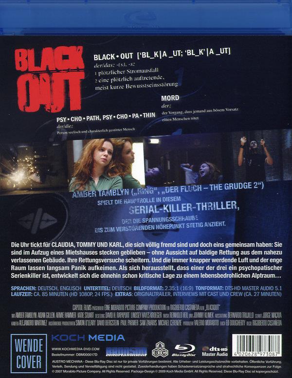 Film américain, Blackout est un thriller psychologique réalisé par Rigoberto Castañeda, sorti en 2008, avec Amber Tamblyn, Aidan Gillen, Armie Hammer et Katie Stuart. Il est basé sur le roman du même nom du romancier italien Gianluca Morozzi, bien que l’intrigue du film s’écarte fortement du matériau source. L’intrigue raconte l’histoire de trois personnes, dont un tueur en série psychopathe, qui sont piégées dans un ascenseur après une panne de courant.