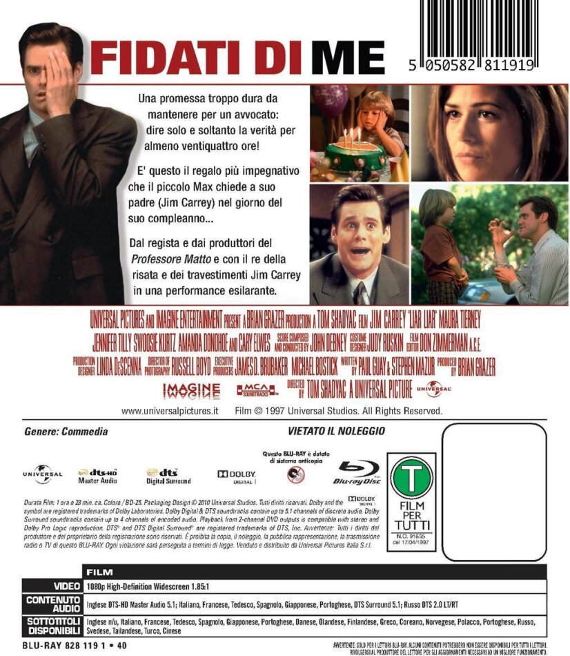 Una promessa troppo dura da mantenere per un avvocato: dire solo e soltanto la verità per almeno ventiquattro ore! È questo il regalo più impegnativo che il piccolo Max chiede a suo padre nel giorno del suo quinto compleanno... Il re della risata e dei travestimenti in una delle sue performances più esilaranti.