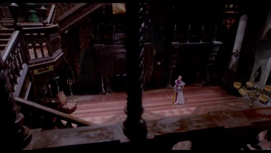Les dialogues sont sympas, l’intrigue aussi. Il y a évidemment des choses tirées par les cheveux et des incohérences, ainsi que des choses que j’aurais bien voulu voir (comme quelqu’un tomber dans le liquide rouge qu’il y a dans le sous-sol du manoir). Cette demeure gigantesque est quasiment un gouffre ou monstre vivant bien inquiétant, tout comme la cage d’ascenseur ! Le cinéaste crée le choc visuel en mêlant la fascination à l'angoisse du lieu prêt à tout avaler !