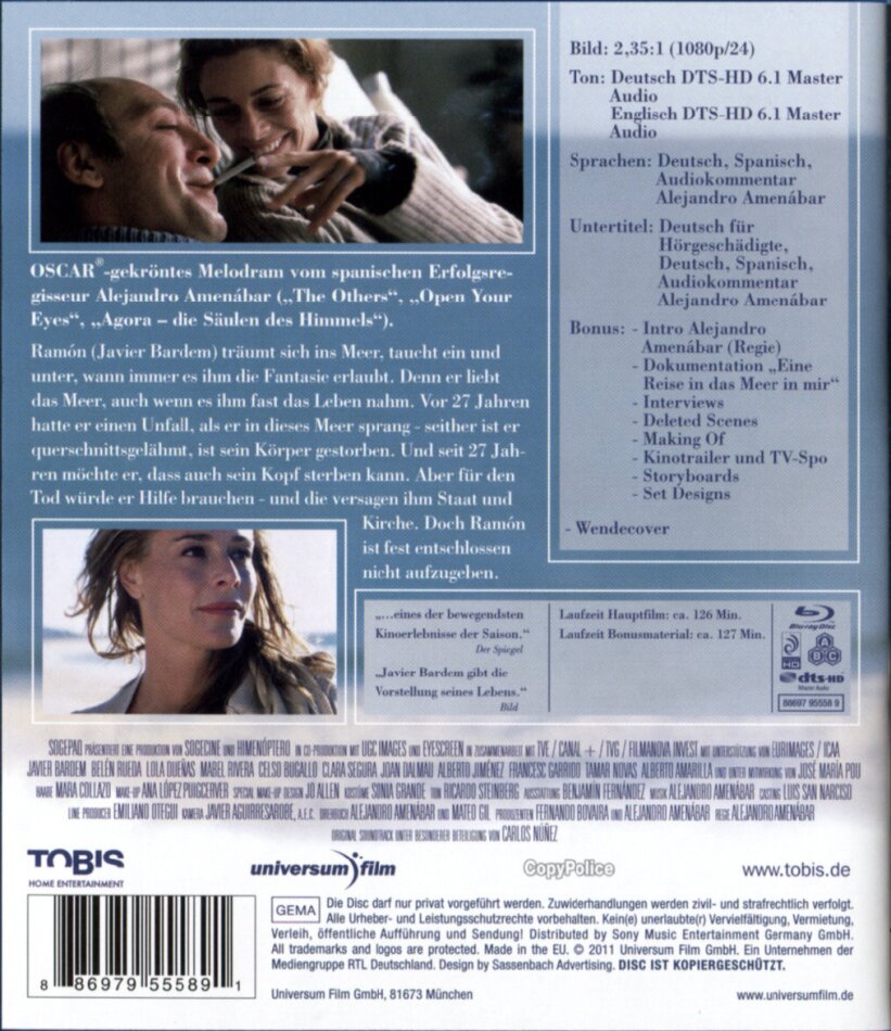 Habe den Film vor einigen Monaten im Spanischen Original gesehen. obwohl der Dialekt sehr schwer verständlich war, hat mich der Film beeindruckt und gerührt wie lange nichts mehr auf der Mattscheibe. Das Thema ebenso kontrovers wie aktuell. Auch in der Schweiz ist aktive Sterbehilfe nicht erlaubt, wird aber meines wissens durch Organisationen für Selbstbestimmung ermöglicht. Frage: Wer nimmt sich das Recht, darüber zu entscheiden, ob ein Mensch lebenslang zu leiden hat? Das Recht und die Würde des Menschen ist unantastbar. Vor allem das Recht auf ein selbstbestimmtes Leben und einen würdigen Tod. In tiefer Dankbarkeit in Erinnerung an meinen Freund Beni, der mir mehr über das Leben beibrachte, als alle andern. und der glücklicherweise das Recht hatte, sein schweres Schicksal nur so lange tragen zu müssen, wie es ihm möglich war.