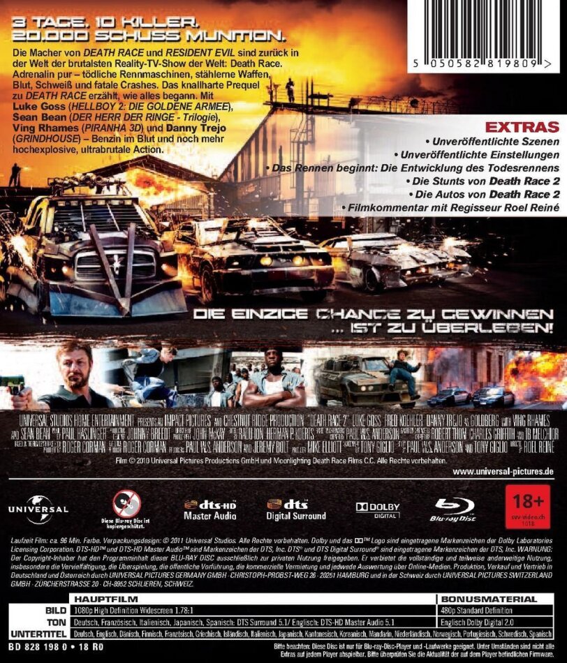 die vorzetzung, respektive vorgeschichte von death race ist gut gelungen. die action ist einwandfrei und macht keinen billigen eindruck wie es bei fortsetzungen sonst so üblich ist. unter den darstellern befinden sich auch einige bekannte gesichter..es wäre jedoch cool gewesen wenn "machete" die hauptrolle übernommen hätte.