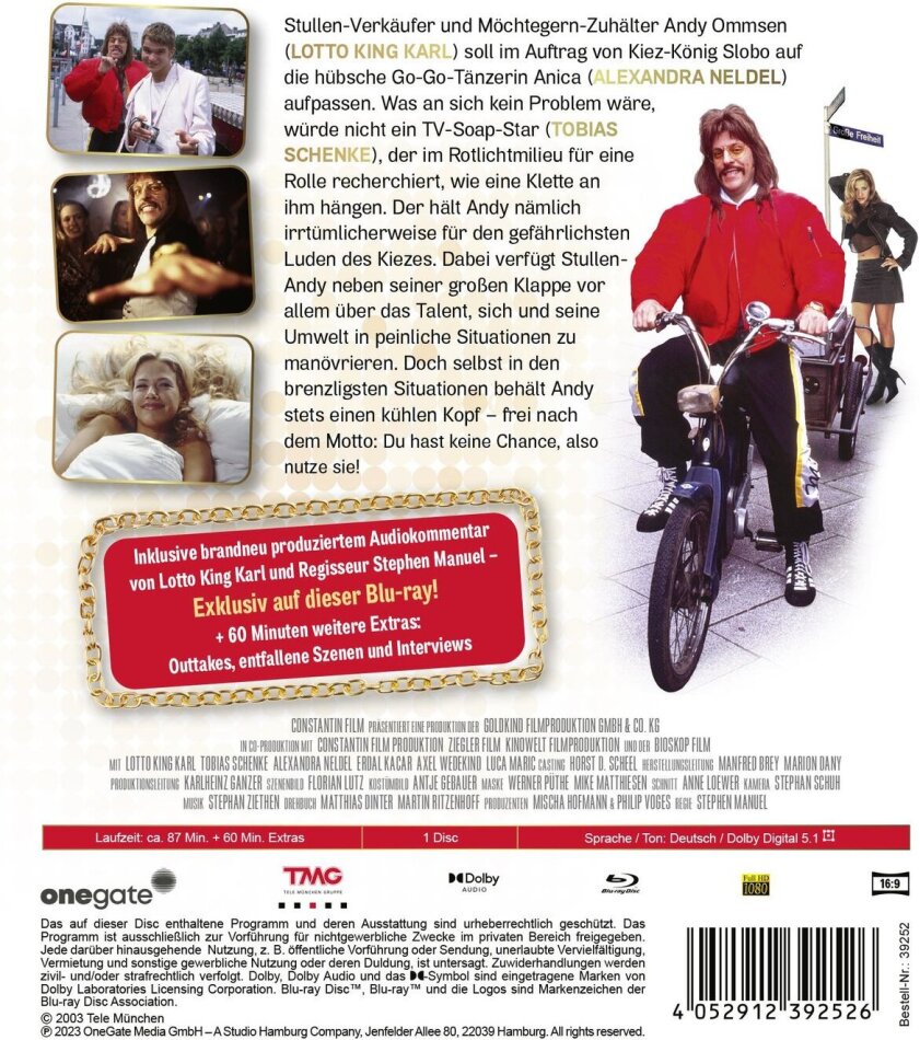 Keine einfache Aufgabe. Und zu allem Überfluss schaut ihm dabei auch noch Jungschauspieler Timo (Tobias Schenke) zu Recherchezwecken über die Schulter. Er hält Andy nämlich für den gefährlichsten Luden des Kiez. Dabei verfügt Andy neben seiner grossen Klappe vor allem über das Talent, sich und seine Umwelt in peinliche Situationen zu manövrieren.
