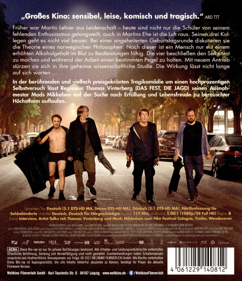 Mads Mikkelsen est exceptionnel, un de mes acteurs préféré, les autres sont excellents aussi. Le film aborde les thématiques et problèmes de la vie sous un angle particulier, celui de l'alcool. C'est intéressant, cette recherche d'équilibre social, familial et professionnel et le trouver n'est pas donné à tous.. A titre personnel, ayant l'âge de l'anniversaire fêté au début du film, je suis soulagé d'avoir cet équilibre après avoir vu ce film :-)