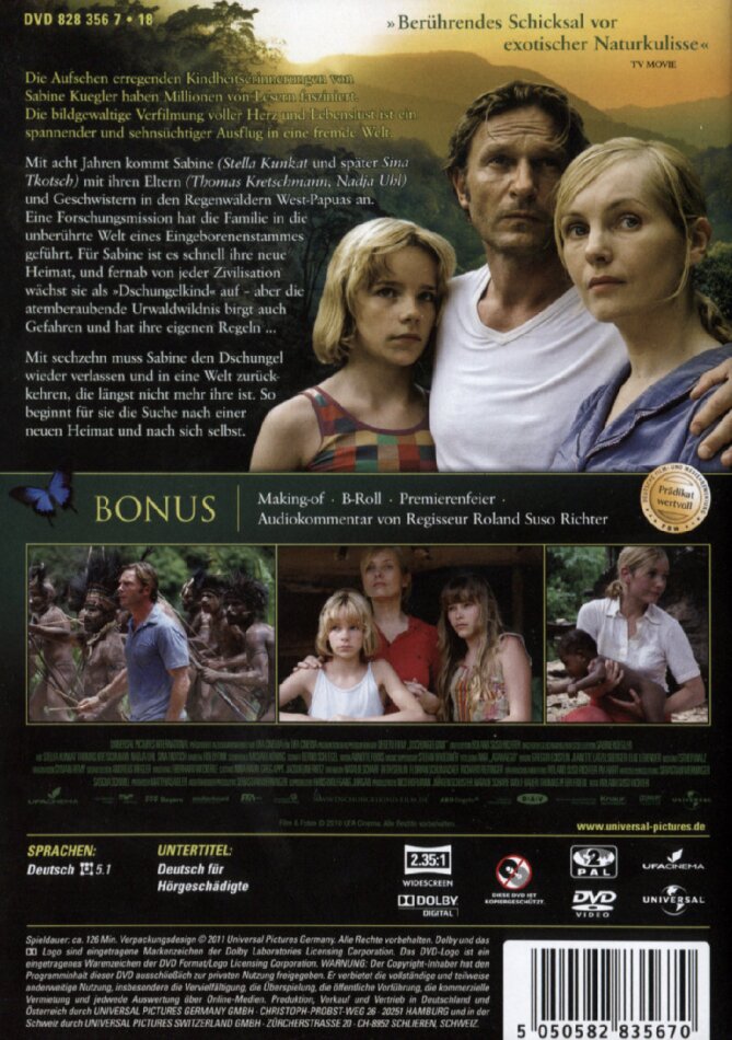 Über die positiven Seiten das Streifens haben sich hier die anderen Rezensisten schon begeistert. Dem kann ich mich nur zu einem gewissen Grad anschliessen. Die Musik zum Beispiel ist etwas gar süsslich geraten. Solche emotionale Breitseite haben die Schauspieler nicht nötig. Bedenklich finde ich, dass die politische Situation Westpapuas (Irian Jayas) komplett ausgeblendet wurde. Warum wohl wurde der Film NICHT an Originalschauplätzen gedreht? Weil Indonesiens Regierung das mit Sicherheit verboten hat. Es schwelt nämlich seit 50 Jahren ein tragischer, ungleicher Konflikt, in dessen Verlauf Indonesien, seine Wirtschaftsinteressen (Holz & Bodenschätze!) brutal mit Militär gegen die Naturvölkern durchsetzt und sie bis heute weitgehend dezimiert und ihren Lebensraum zerstört hat. Dass Buch-Autorin Sabine Kuegler die Gelegenheit nicht benutzt hat, mit dem Film für die Menschen einzustehen, die ihr eine so schöne Kindheit beschert haben, enttäuscht nachhaltig. Auch im reichhaltigen Bonusmaterial - kein Wort über die Misere. Dem Zuschauer wird eine Natur- und Menschenwelt vorgegaukelt, die es so längst nicht mehr gibt... So wirkt dann die Filmpremiere in Berlin, sonderlich hohl. Natürlich ohne einen einzigen Papua! Man hat 80 entwurzelte, urbanisierte Menschen aus Westpapua zum Set nach Malaysia eingeflogen, sie kurz in Steinzeit-Papuas verwandelt und dann wieder zurückgeschickt... Da bleiben einige markige Fragen offen...