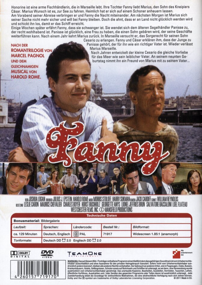 Ihre Tochter Fanny liebt Marius, den Sohn Kneipiers César. Marius Wunsch ist es, zur See zu fahren. Heimlich hat er sich auf einem Schoner anheuern lassen, der zu den Inseln unter dem Winde fährt. Am Vorabend seiner Abreise verbringen er und Fanny die Nacht miteinander. Am nächsten Morgen ist Marius sich seiner Sache nicht mehr sicher und will bei Fanny bleiben. Doch die ahnt, dass er an Land nicht glücklich werden wird und schickt ihn los, damit er das Schiff erreicht. Einige Wochen später erfährt Fanny, dass sie schwanger ist. Sie wendet sich dem älteren verwitweten Segelhändler Panisse zu, der recht wohlhabend ist. Panisse ist glücklich, eine Frau zu haben, die einen Sohn gebären wird, der seine Geschäfte weiterführen kann. Nach einem Jahr kehrt Marius zurück, der von seinem Ziel enttäuscht ist. In Marseille versucht er, das Sorgerecht für seinen Sohn Cesario zu erlangen. Fanny und César erklären ihm, dass der Junge zu Panisse gehört, der für ihn wie ein richtiger Vater ist. Wieder verlässt Marius Marseille. Diesmal arbeitet er als Werkstattmechaniker in einer nahen Stadt. Nach Jahren entwickelt der kleine Cesario die gleiche Vorliebe für das Meer wie sein leiblicher Vater. An seinem neunten Geburtstag nimmt ihn ein Freund von Marius mit zu seinem Vater. Fanny fährt hinterher und erklärt Marius, dass Panisse im Sterben liege. Auf dem Sterbebett diktiert Panisse César einen Brief, in dem er Marius fragt, ob er Fanny heiraten will.
