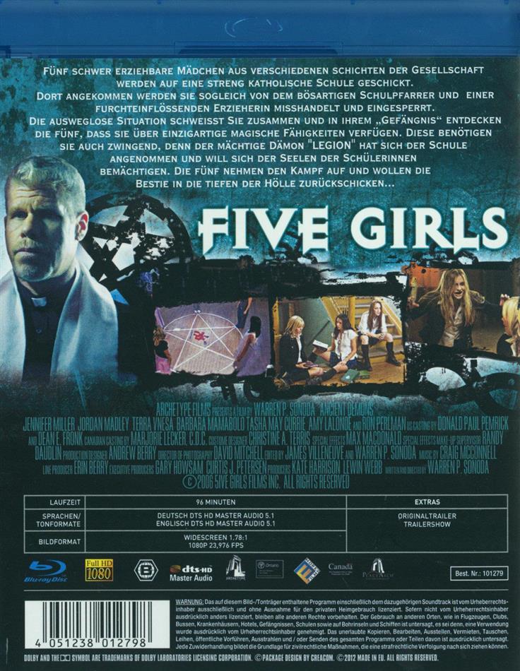 also was die titel betrifft, unter welchen dieser film herausgekommen ist, das sind auch viele: "5ive Girls", "Ancient Demons", "Dämonen im Mädchenpensionat" und "Beautiful Girls vs. 200 Demons". warum? weiss keiner so recht ;-). zum inhalt: TV mässiger dämon-im-mädcheninternat-thriller, der eine lasche story mit plumpen CGI effekten mit ein paar erotischen klischees zu überdecken versucht. nicht gut, das ganze, aber auch nicht (allzu) schlecht.
