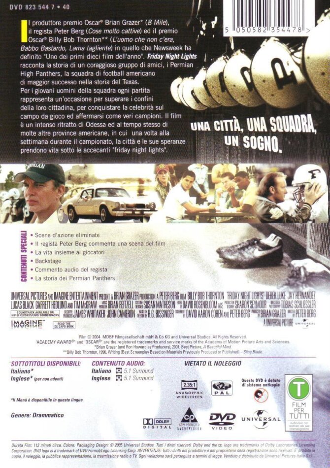 Friday night lights ist sehr emotionsgeladen. Der Film an und für sich ist interessant gemacht mit vielen guten Einstellungen, welche einzelne Football-Szenen nachstellt. Der Film ist realitätsnah (basiert ja auch auf einer sogenannt wahren Begebenheit). Hier der eine Angeber, der sich schon als Star sieht bevor er einer ist, auf der andern Seiter der Quarterback, der mit dem Leben in seiner Geburtsstadt schwer klar kommt. Und dort der schwarze Junge, der den Mund nicht aufmacht, jedoch die eindrücklichste Person des ganzen Films ist (wird gespielt von Lee Jackson). Die Schauspieler verkörpern ihre Rolle sehr gut, leben sich geradezu hinein, dies geht leider jedoch ein bisschen unter, da die Handlungen schnell aufeinander folgen und teilweise überhastet sind.