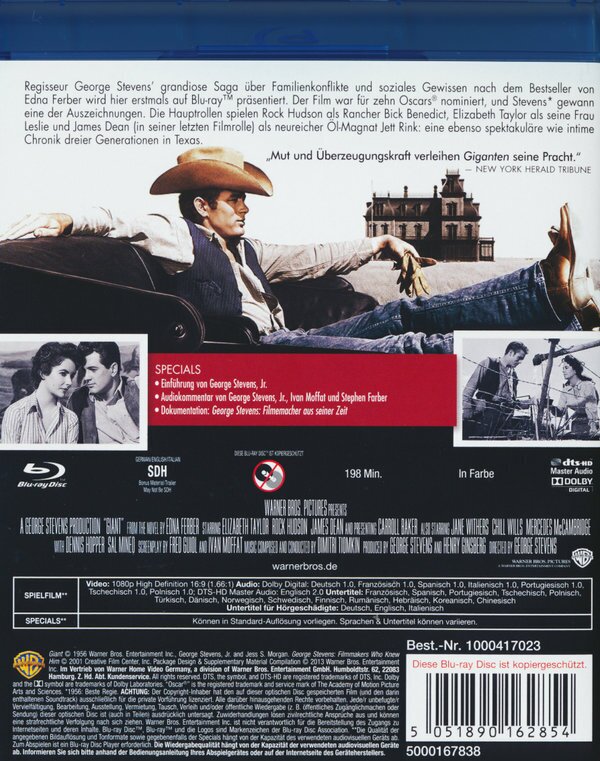 es ist der letzte film mit james dean weiter spielen rock hudson und elisabeth taylor mit ein meisterwek der filmgeschichte!!!!! -