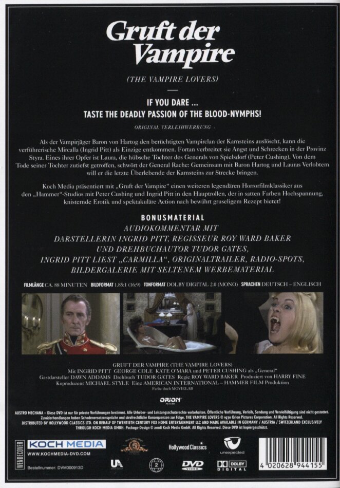 Einer der letzten grossen Filme der Hammer Productions und natürlich ein Vampir-Klassiker. Und für Freunde der Erotik: Madeline Smith, Ingrid Pitt und Kate O'Mara zeigen Haut und diese Frauen sind schön!!!