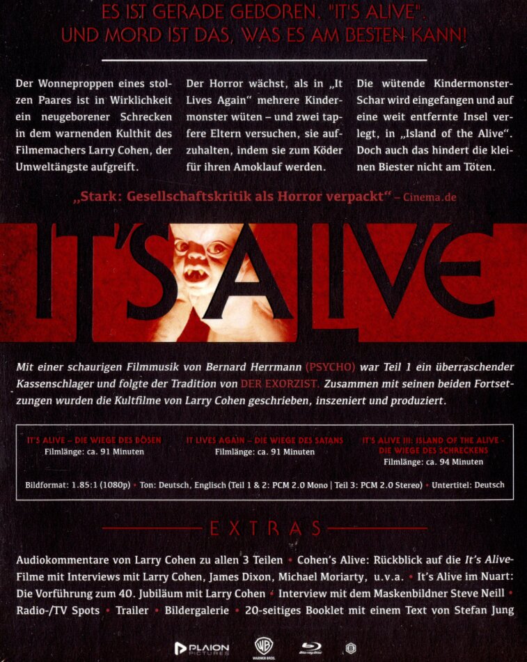 | Originaltitel | It's Alive (1974) / It Lives Again (1978) / It's Alive III: Island of the Alive (1987) |
