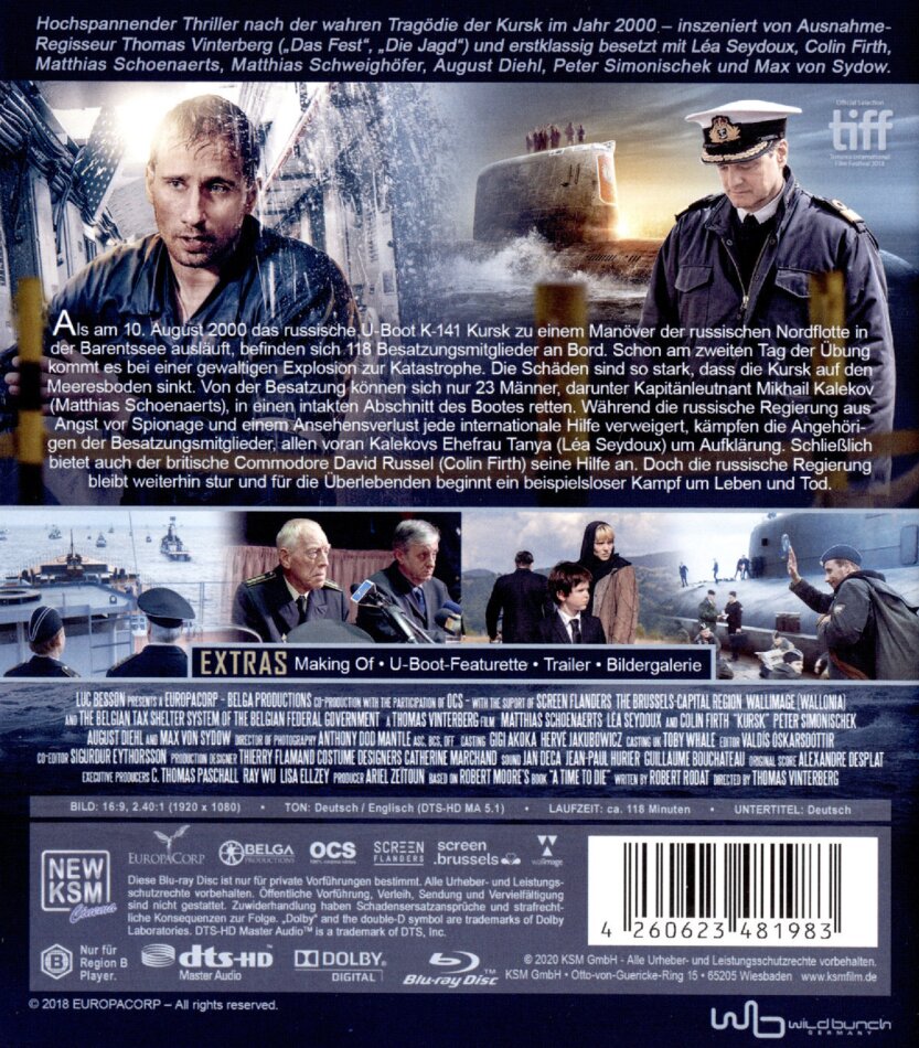 Hochspannender Thriller nach der wahren Tragödie der Kursk im Jahr 2000 inszeniert von Ausnahme-Regisseur Thomas Vinterberg (Das Fest, Die Jagd) und erstklassig besetzt mit Léa Seydoux, Colin Firth, Matthias Schoenarts, Matthias Schweighöfer, August Diehl, Peter Simonischek und Max von Sydow.