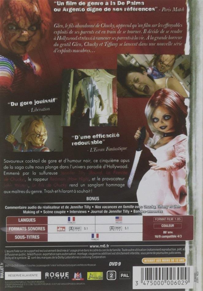 ...ist Chucky wieder da! Der wohl witzigste und selbstverliebteste Serienmörder der Filmgeschichte schlägt wieder zu und dieses mal ist die ganze Familie dabei. Ausserdem dürfte Don Mancini (Drehbuchautor aller Teile) dieses mal selbst auf den Regiestuhlt klettern. Dieser Teil schliesst an Bride Of Chucky an und ist im gleichen Stil (welcher sich ja vor allem in Punkto Humor von den ersten 3 Einträgen unterscheidet). Die erste Hälfte ist absolut genial: Hollywood nimmt sich selbst auf's Korn und auch alle Darsteller (allen voran Jennifer Tilly und Redman)...zum kaputt lachen! Auch das Blut kommt nicht zu kurz. In der 2. Hälfte wird dann alles etwas konfuser und kann nicht mehr gleichermassen überzeugen, weshalb mir persönlich Bride Of Chucky etwas besser gefällt. Doch dank Dialogen wie "But violence is bad...I heard that on TV" - "No, not violence...VIOLINS: that shrieking music drives the world mad!" ist es immer noch eine wieder mal sehr gut gelungene Fortsetzung einer meiner Lieblings-Horror-Franchisen!
