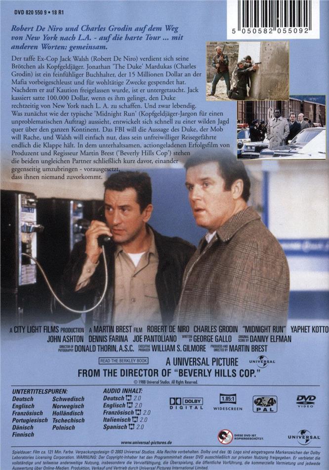 "Midnight Run" ist zum Brüllen komisch. DeNiro und Grodin liefern sich brilliante Wortduelle in einem sehr unterhaltsamen Zweistünder. Die Zeit vergeht wie im Flug, nicht zuletzt dank einem starken Skript und den bereits genannten, hervorragenden Schauspieler. Doch hinter dieser Komödie versteckt sich auch eine zutieftst menschliche Komponente: die Ehrlichkeit, die bereits vorher erwähnt worden ist. DeNiro befindet sich hier als Jack Welsh sozusagen auf seinem eigenen Pilgerweg und reinigt dabei seine Seele, indem er mit seiner Vergangenheit ins Reine kommt. Und Grodin spielt dabei den Schutzengel und Stichwortlieferanten. Nebenbei gibt es noch einige Seitenhiebe auf den "American Way Of Life": Da kann eine gesperrte Kreditkarte schon mal ein ernsthaftes Problem darstellen...:)