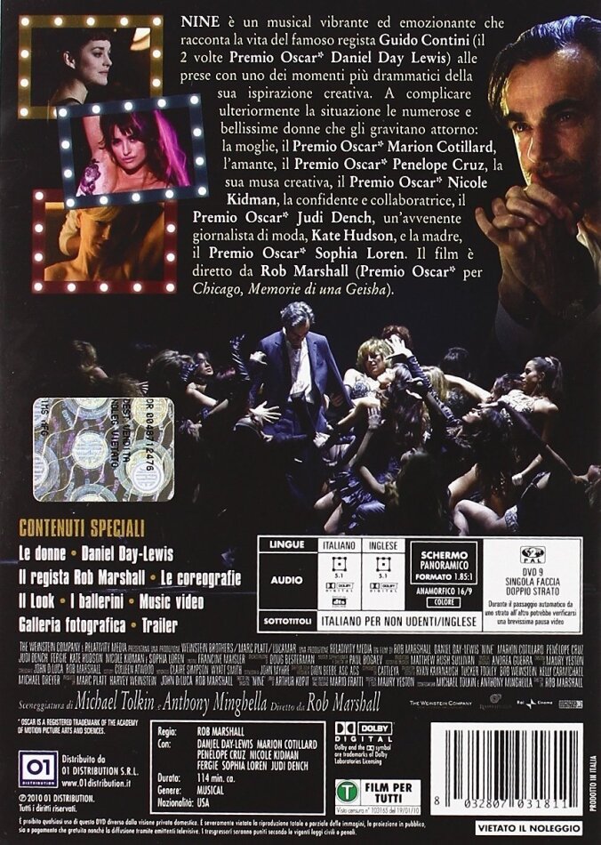 Künstlerisch orientierte Musicals, die dazu auch noch, zumindest teilweise, gute Zutaten haben, werden heutzutage kaum noch produziert. Dabei gibt's sicher genug Fans, denen es gefällt (der qualitativ absolute Tiefpunkt, trotz kommerziellen Erfolgs war "Mamma Mia"). Fazit: So schlecht ist "Nine" überhaupt nicht. Sicher hätte bei den grossartigen Zutaten mehr herauskommen können. Die Story fand ich manchmal konfus, aber das waren F.Fellinis (der die lose Vorlage zum Drehbuch ist) Filme für mich fast immer. Die Musik hatte manchmal Ohrwurmcharakter. Kostüme, location und Szenerie war hingegen perfekt. Ebenso die Darstellung von M.Cotillard und D.D.Lewis sowie die Tanzeinlagen insgesamt. Wer ein Werk a la "Chicago" erwartet wird enttäuscht werden. Trotz allem sehenswert.