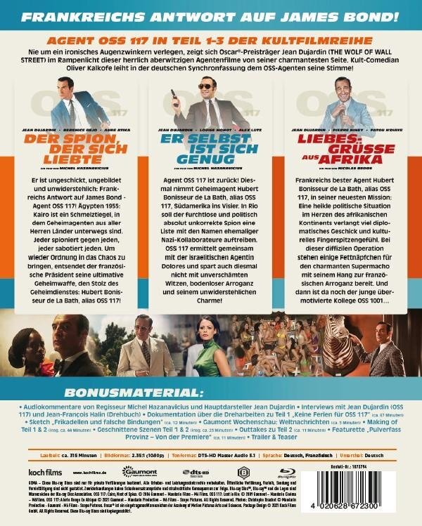 Die drei Kultkomödien um die Abenteuer des unvergleichlichen Agenten Hubert Boniseuer de La Bath alias Oss 117 – gespielt von Jean Dujardin – in einer Edition.