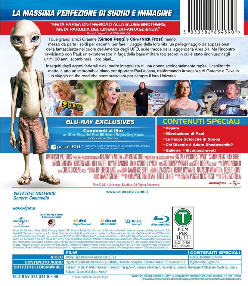 Il peggior doppiaggio di una pellicola sin dai tempi dell'asincronia video e audio. Esagerazioni a parte, la scelta di Elio come voce di Paul la ritengo particolarmente pessima. Tutta la comicità e originalità viste nella versione inglese e tedesca, sono decisamente andate perse.