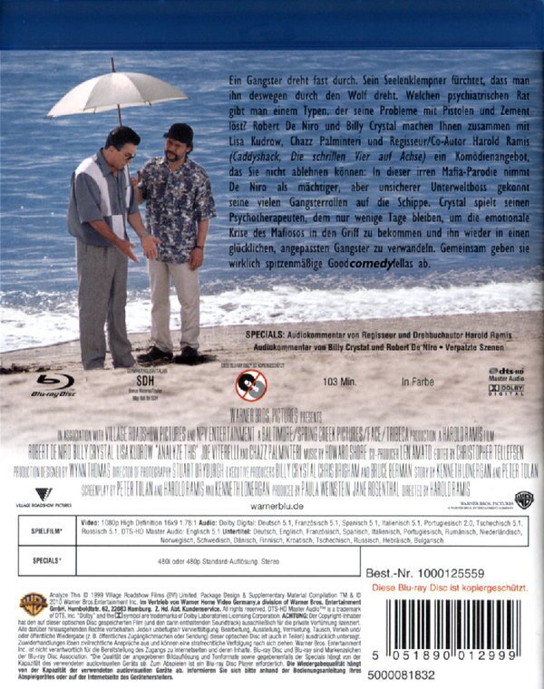 ich hab bei einem film selten so gelacht wie bei analyze this! ich ging ohne erwartungen in den film und wurde richtiggehend überrascht! robert de niro ist einfach allererste sahne! was der mann alles drauf hat ist ja glatt der wahnsinn! ich hab mich flachgelacht! meiner meinung nach ein film den man gesehen haben muss!
