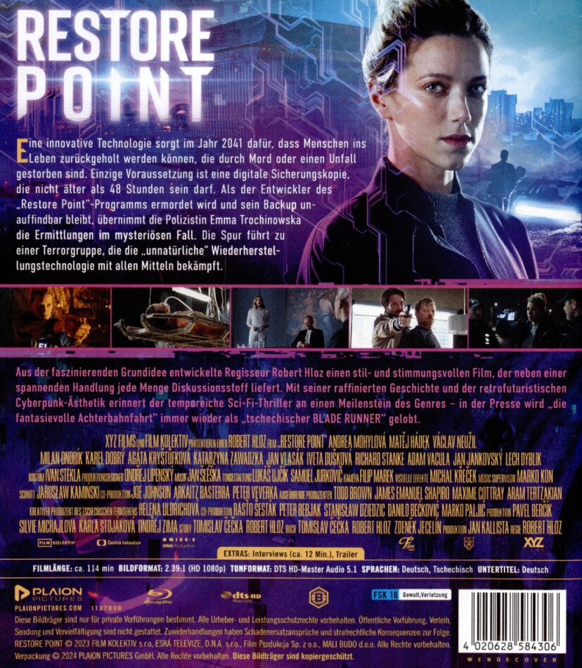 Eine innovative Technologie sorgt im Jahr 2041 dafür, dass Menschen ins Leben zurückgeholt werden können, die durch Mord oder einen Unfall gestorben sind. Einzige Voraussetzung ist eine digitale Sicherungskopie, die nicht älter als 48 Stunden sein darf. Als der Entwickler des ,"Restore Point"-Programms ermordet wird und sein Backup unauffindbar bleibt, übernimmt die Polizistin Emma Trochinowska die Ermittlungen im mysteriösen Fall. Die Spur führt zu einer Terrorgruppe, die die ,"unnatürliche" Wiederherstellungstechnologie mit allen Mitteln bekämpft.