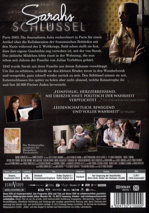 Fast immer ist es ziemlich hilfreich bevor wichtige Entscheide gefällt werden, sie mit den historischen Vorkommnissen zu vergleichen. Heutige Wirtschafts-Gesellschafts- oder Politkrisen zeigen meist Analogien mit der Vergangenheit auf. Das Rad muss nicht jedes Mal neu erfunden werden. Fazit: Darstellerisch gibt's an dem Werk nichts zu mäkeln. Besonders die kleine Hauptdarstellerin beeindruckt. Die Geschichte selbst ist spannend, aber nicht kitschig, und versucht auch keinen spezifischen Schuldigen zu identifizieren. Schliesslich folgten ähnliche Tragödien damals und heute. Besser im O-Ton (Franz./Engl./Jiddisch). Filmtipp mit ähnlichem Thema: "Die Kinder von Paris"