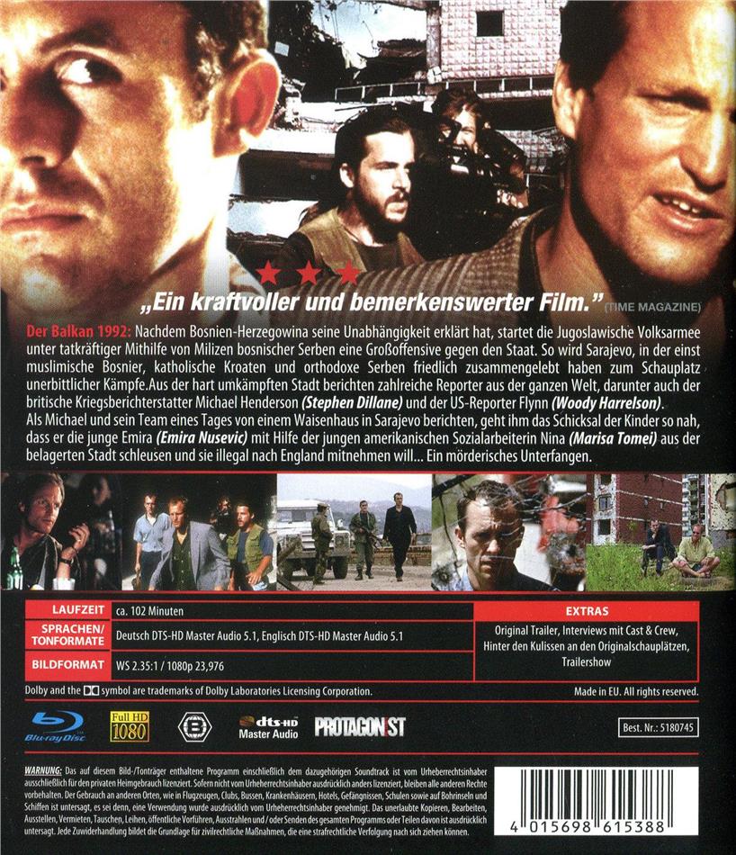 Ein sehr beeindruckender Film der den Horror und Schrecken des Krieges im Ehemaligen Jugoslawien zeigt, Sarajevo wird pausenlos beschossen und die Muslimische Bevölkerung barbarisch umgebracht und an forderster Front die Reporter aus dem Westen und ein Weisenhaus voller unschuldiger Kinder. Der Krieg zeigt auch das vielen Kindern in diesem abscheulichen Krieg gandenlos und Umbamherzig die Jugend geklaut wurde. Woody Harrelson und der damals noch im Ausland unbekannte Goran Visnjic setzen sich ganz gut in Szene
