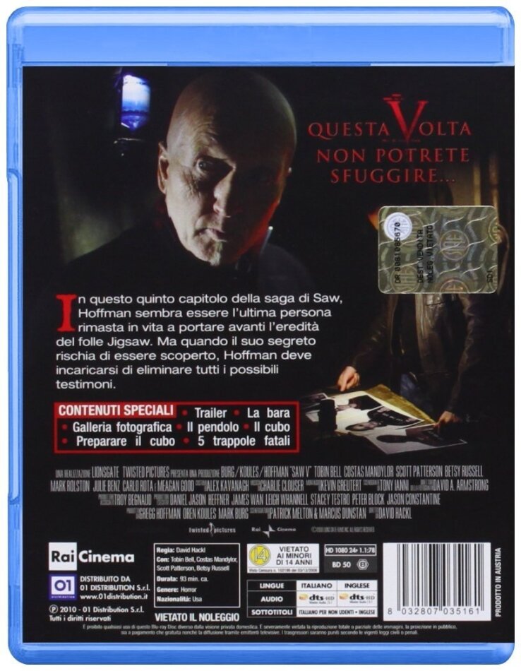 Der grandiose fünfte von sieben Teilen der ultrabrutalen spannenden "SAW" Reihe in schöner Optik und mit erstklassigen Darstellern...