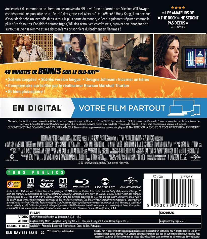 The Rock muss wieder die amerikanische Kleinfamilie retten, diesmal aus einem Wolkenkratzer statt aus dem Erdbebenzentrum, und diesmal ist seine Frau halt Neve Campbell, was das Ganze aber auch nicht besser macht ...