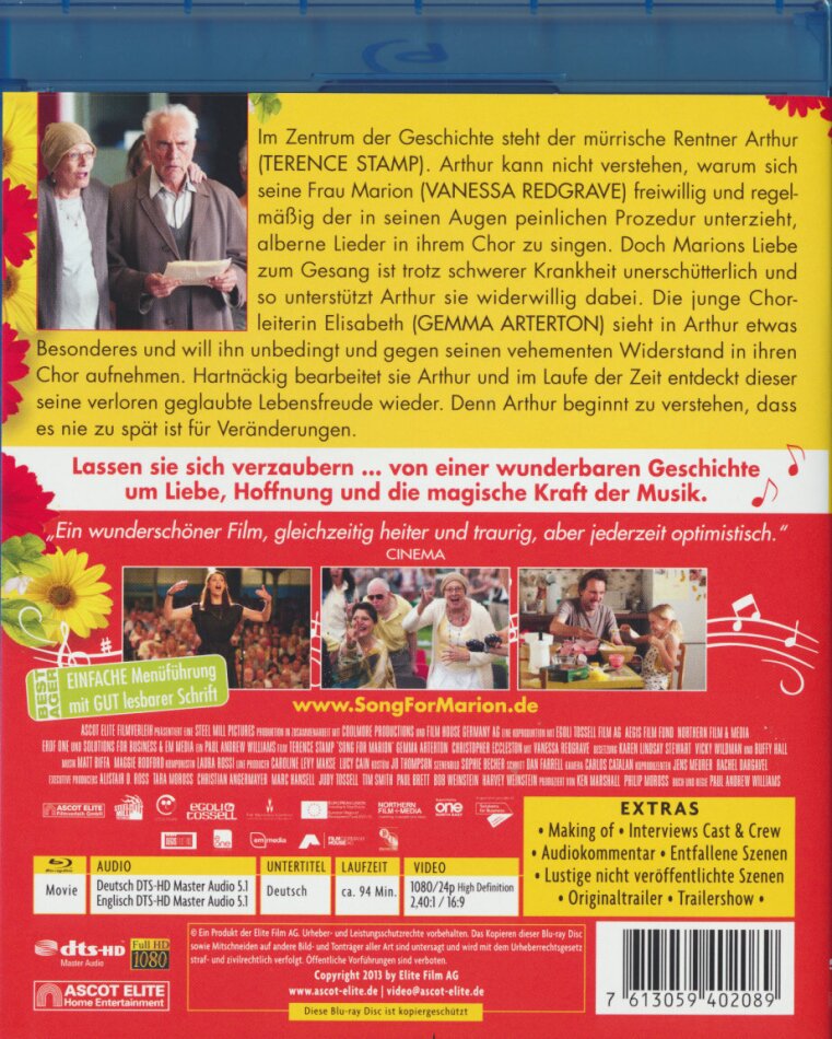 Hartnäckig bearbeitet sie Arthur und im Laufe der Zeit entdeckt dieser seine verloren geglaubte Lebensfreude wieder. Denn Arthur beginnt zu verstehen, dass es nie zu spät ist für Veränderungen. Lassen Sie sich verzaubern von dieser einfühlsamen Liebesgeschichte, in der die Musik die verschlossen geglaubte Tür zu einem einsamen Herzen öffnet.