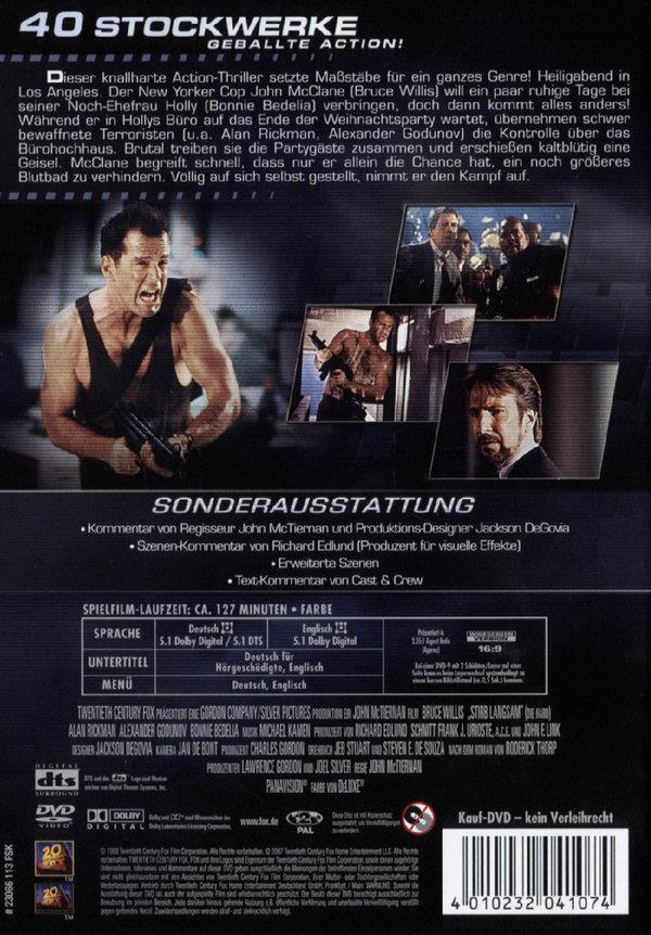Heiligabend in Los Angeles. Eine Gruppe schwerbewaffneter Männer stürmt ein Bürohochhaus. Die Gangster wollen 624 Mio Dollar erbeuten, die als Wertpapiere in einem computergesicherten Safe lagern. Eine Partygesellschaft, die im obersten Stockwerk feiert, nehmen sie als Geiseln. Nur der New Yorker Polizist Mc Clane kann entkommen. Doch alle Ausgänge sind blockiert, die Telefonverbindungen unterbrochen. Dann wird kaltblütig eine Geisel erschossen. Mc Clane begreift, dass nur er eine Chance hat. Völlig auf sich selbst gestellt nimmt er den bedingungslosen Kampf auf...