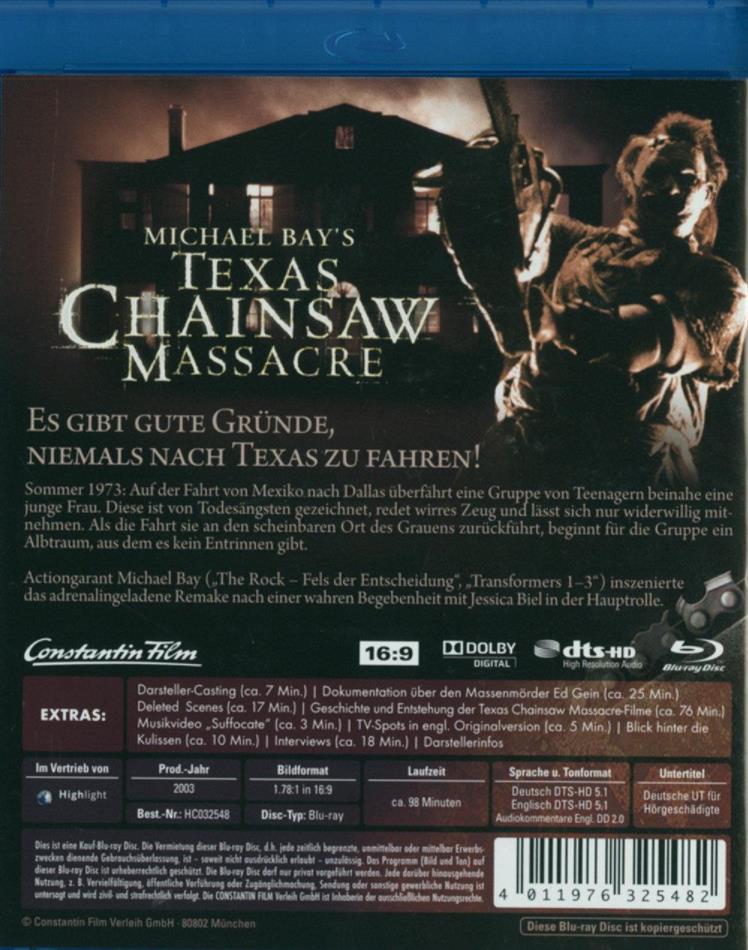 'The Texas Chainsaw Massacre' von 1974 gilt als DER Horrorklassiker überhaupt. Leider muss ich zugeben dass er mir nicht gefallen hat... Die 2003 Version davon ist aber was anderes, GANZ was anderes. So anders dass man es eigentlich gar nicht Remake nennen sollte. Ausser dem wohlbekannten 'Leatherface' (der Motorsägeschwingende Psycho), Texas und verirrten Teens weicht Michael Bays Version derart vom Original ab dass man fast von einem Sequel reden kann. Dieser Film ist grossartig : wunderschön gefilmt, glaubwürdige Schauspieler, grausam gute Schockeffekte... Endlich mal ein Horrorfilm der es verdient so genannt zu werden. ACHTUNG : nichts für schwache Nerven!