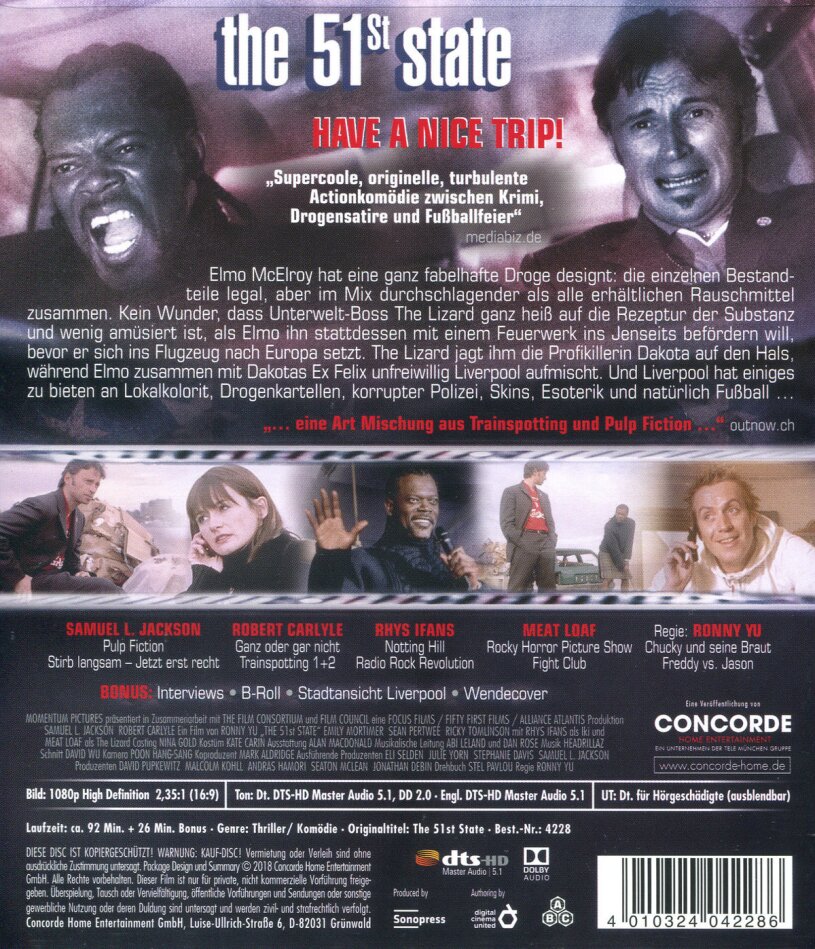 mein gott hab ich mich bei diesem film krummgelacht. die dialoge sind vom feinsten. sicher nicht jedermanns/frau sache. wenn man z.B. Guy Ritchie filme mag, mag man auch the 51st state!