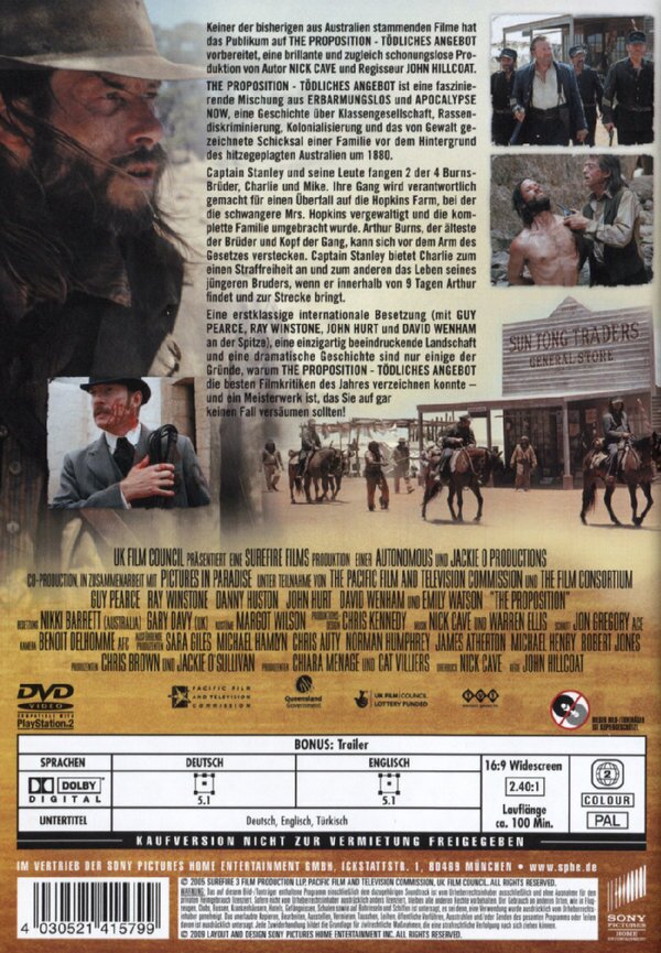 Ich habe kein so guter Western gesehen seit "Schneller als der Tod". Sehr zu empfehlen auch denen die Western nicht mögen, denn hier wurde auf der ganzen Linie gut gearbeitet. Von der Musik bis zum kleinsten Detail stimmt einfach alles. Ein Guy Pearce wie man ihn noch nie gesehen hat.
