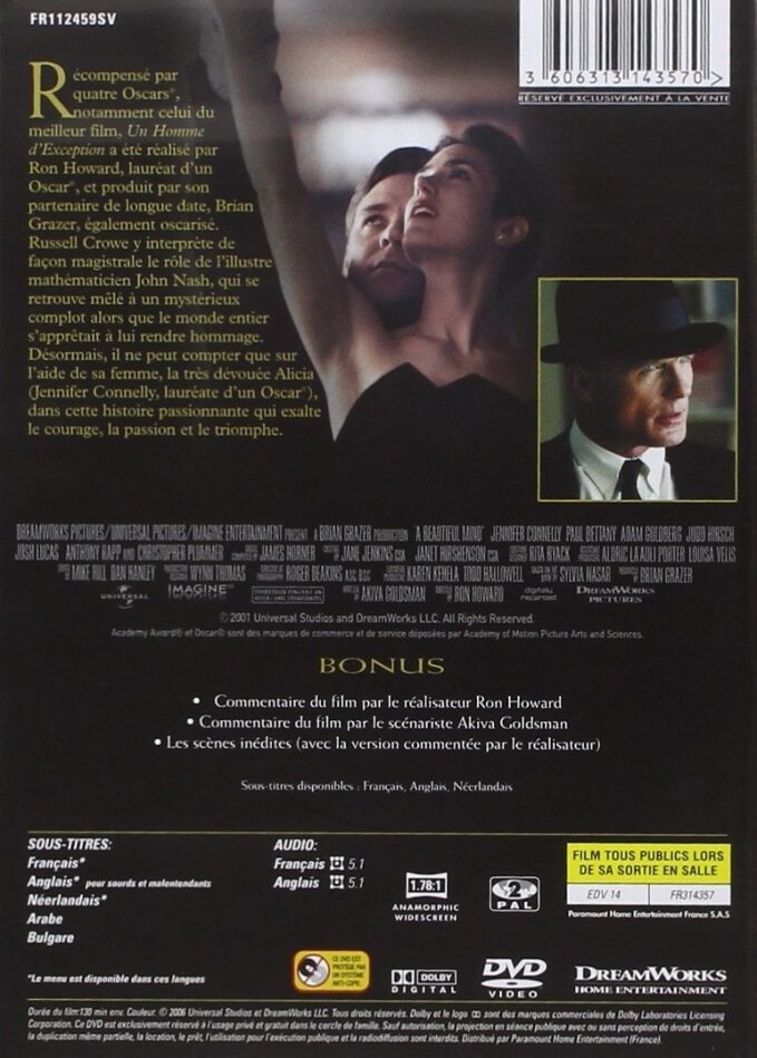 Russell Crowe interprète le rôle de l’illustre mathématicien John Nash, qui se retrouve mêlé à un mystérieux complot alors que le monde entier s’apprêtait à lui rendre hommage. Désormais, il ne peut compter que sur l’aide de sa femme. Une histoire passionnante qui exalte le courage, la passion et le triomphe.