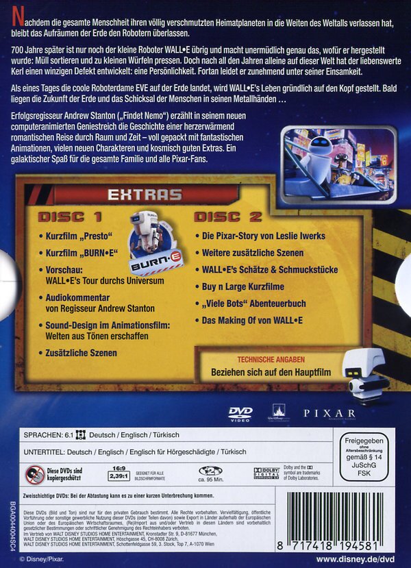 Dies ist der schlechteste Animationsfilm den es gibt! Den ganzen film muss man die 2 pipsstimmen aushalten: "Wall-EEE!!" "Evaaa" :( nicht kaufen