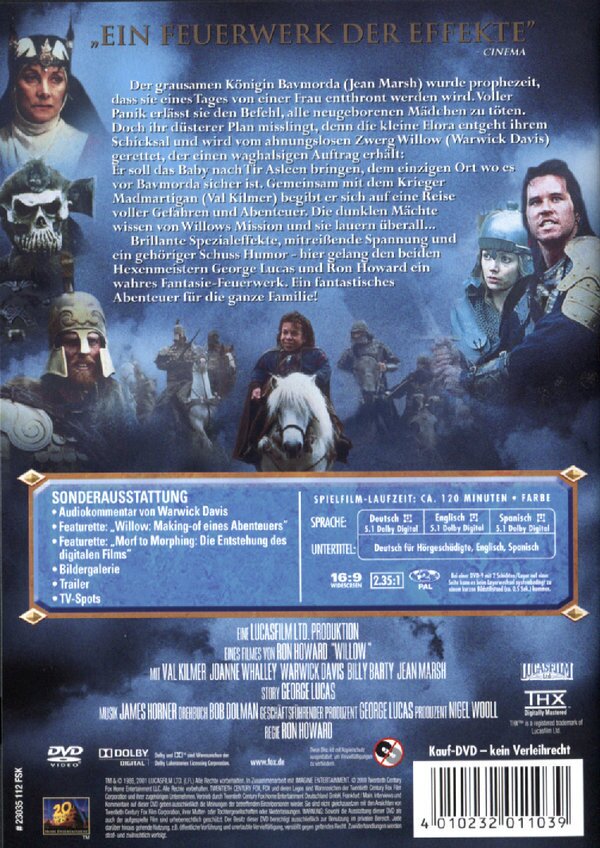 bis lord of the rings kam, war willow sicher der beste fantasy-film. sehr schön gefilmt, gute und auch witzige story die auch einige parallelen zu lord of the rings aufweist... man merkt auch deutlich george lucas handschrift. gehört in die sammlung jedes fantasy-fans.