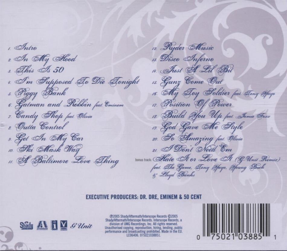 Hier schreibe ich einen professionellen Bericht über dieses album und kein klishée bericht wie die von ein paar kunden hier: von wegen "nur für 12-jährige wannabe's"! Auf diesem album ist 50 zurück auf den Strassen, wieder mal erfreulich nachdem eher mittelmässigen Teil namens Get Rich Or Die Tryin. 50 Cent hat reichlich Skillz und Flow. Und jeder der das Gegenteil behauptet, ist entweder kein richtiger Hip hop Fan oder ein ahnungsloser. 50 rechnet auf diesem Album mit seinen alten Feinden und hatern ab. Das Album klingt allgeimein nach einem verbalen Massacre. Ausser ein paar schönen smoothen Songs, ist 50 wirklich grimy, gutter and street. Eine gute Leistung (inklusiv der Hammer Singles: Disco Inferno und Candy Shop). Frag mich ob er diesmal seine Verkaufszahlen vom letzten Album toppen kann!?!