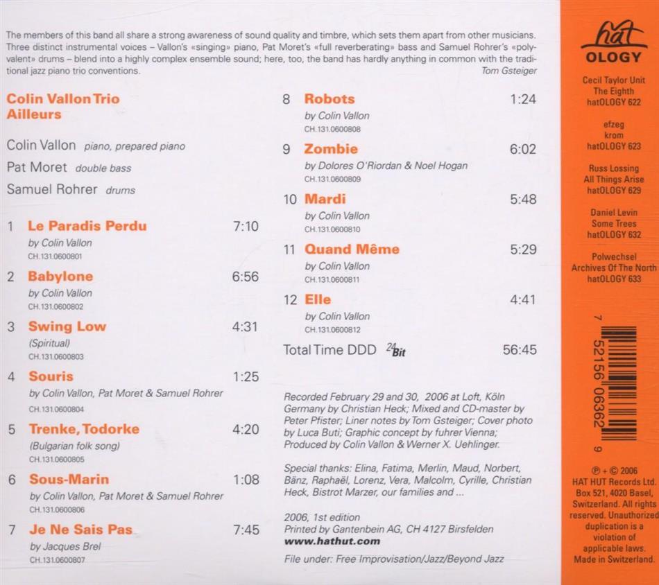 Lob für Werner X. Uehlinger, dass er dem phantastischen Collin Vallon Trio eine tolle, sehr vielfältige Produktion auf seinem Label hatOLOGY ermöglicht hat. Nicht minder Lob natürlich auch an Collin Vallon (p), Pat(rick) Moret (b) und Samuel Rohrer (d).