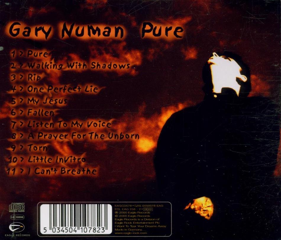 Gary Numan is back! Und er erfreut uns mit einem zeitgemässen und sehr gute Album. Wer hätte gedacht, dass uns der Godfather des Elektronikpops nochmal derart positiv überraschen kann nach teilweise eher flauen Platten in den Achtzigern. Gewohnt schleppende, spartanische Rhythmen münden in absolut ohrwurmige Refrains, die sich sofort und gnadenlos in den Gehörgängen festfressen (Bestes Beispiel: Walking with Shadows). Stücke wie der Titeltrack Pure, My Jesus, Listen To My Voice oder auch der schön ruhige Ausklang I Can't Breathe rechtfertigen den Kauf dieser CD in jedem Fall. Jeder treue Fan von Gary Numan wird sich die Platte eh zutun, aber auch allen andern sei diese Scheibe ans Herz gelegt. Unterkühlter Technopop mit Seele, relativ langsam (Numan-typisch), verspielt, ausgetüftelt, sehr emotionell und gelegentlich mit wahren Soundexplosionen. Ich bin froh, dass sich Numan a) seit Beginn der Neunziger endlich seiner Hauptschwäche in den Achtzigern, dem Einsatz von Simple Minds-mässigen Backgroundsängerinnen entledigt hat und dass er b) nach wie vor in der Lage ist, starke Platten wie einst I, Assassin (1982) oder Metal Rhythm (1988) abzuliefern. Welcome in the new century, Gary!