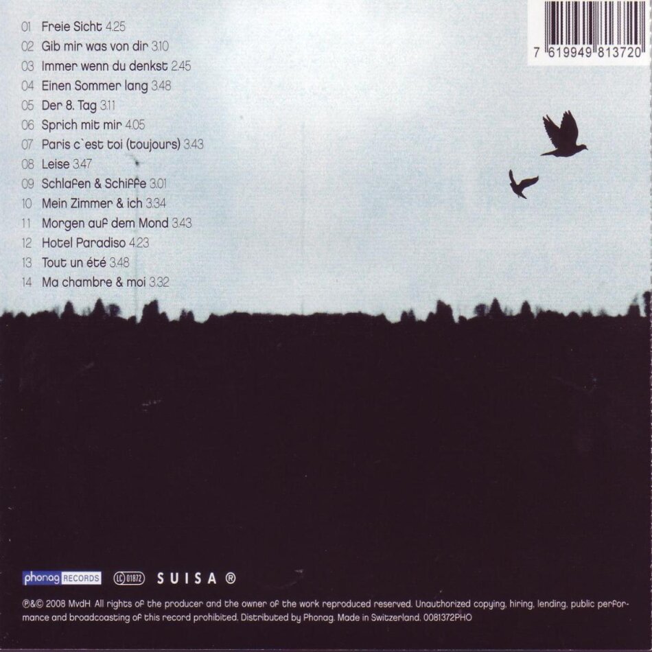 in letzter zeit ist michi von der heide vornehmlich in kleiner besetzung akustisch aufgetreten. das hat auf "freie sicht" spuren hinterlassen. für den neuen longplayer - den ersten mit neuen, eigenen songs seit sechs jahren (dazwischen gabs eine best of und ein album mit neubearbeitungen alter schweizer songs) hat sich der zürcher mit seiner alten freundin annette humpe (ideal, ich+ich) zusammen getan und mit leuten aus ihrer entourage in berlin die neuen songs geschrieben und produziert. entstanden ist typischer von-der-heide-pop, wie ihn seine fans mögen. für einmal konzentriert sich der pop-chansonnier vornehmlich auf hochdeutsche texte, schweizerdeutsch wird höchstens auf der bühne gesprochen, wo von der heide bald wieder zu sehen ist, um "freie sich" live vorzustellen. man darf sich freuen.