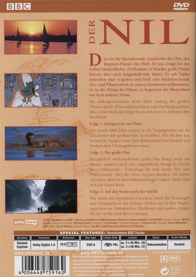 Die faszinierende Geschichte des Nil, des längsten Flusses der Welt. Er war Zeuge bei der Geburt menschlicher Zivilisation, er brachte grosse Fluten hervor, aber auch langanhaltende Dürre. Er sah Städte entstehen und vergehen und hiess eine beeindruckende Tier- und Pflanzenwelt in seinen Gewässern willkommen. Er ist der König der Flüsse, er begeistert die Menschheit wie kein anderer Strom. Die aussergewöhnliche Reise führt die Zuschauer entlang des grossen Flusses durch Wüstenlandschaften und Dschungelgebiete, über schneebedeckte Berge bis zu den Seen im Äthiopischen Hochland.
