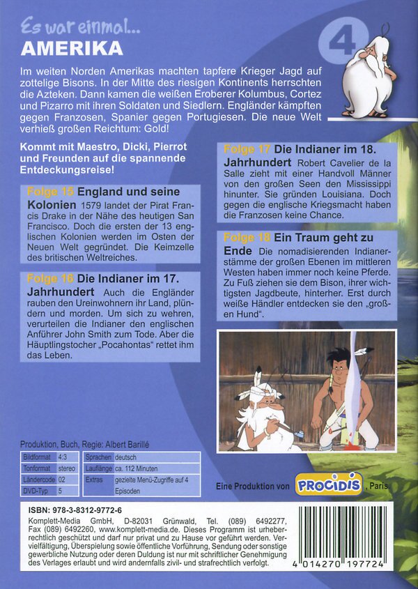 Vor 40.000 Jahren betreten die ersten Menschen Amerika. Später folgen Millionen von Einwandern auf der Suche nach dem grossen Glück. Neue und alte Welt prallen aufeinander: Unter den Ureinwohnern gibt es Astronomen, Kannibalen und Ingenieure, doch keiner von ihnen kennt Glas, Schiesspulver oder das Rad. Bei ihrer Suche nach Edelmetallen zerstören die Europäer Menschenleben und Kulturen und bekriegen sich untereinander. Begleite Maestro und seine Freunde bei der Entdeckung Amerikas: Sie gehen auf Bisonjagd, treffen Azteken und Piraten, erleben, was Sklavenhandel bedeutet, und sind fasziniert von den Erfindungen der Neuzeit.