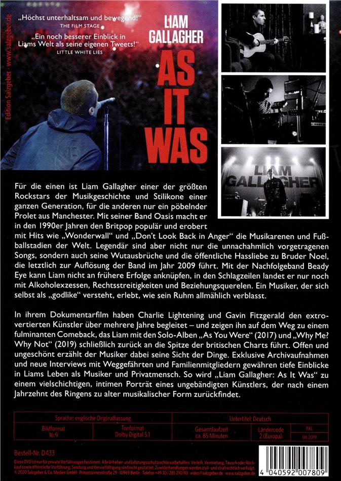 In ihrem Dokumentarfilm haben Charlie Lightening und Gavin Fitzgerald den extrovertierten Künstler über mehrere Jahre begleitet und zeigen ihn auf dem Weg zu einem fulminanten Comeback, das Liam mit den Solo-Alben As You Were (2017) und Why Me? Why Not (2019) schliesslich zurück an die Spitze der britischen Charts führt. Offen und ungeschönt erzählt der Musiker dabei seine Sicht der Dinge. Exklusive Archivaufnahmen und neue Interviews mit Weggefährten und Familienmitgliedern gewähren tiefe Einblicke in Liams Leben als Musiker und Privatmensch.