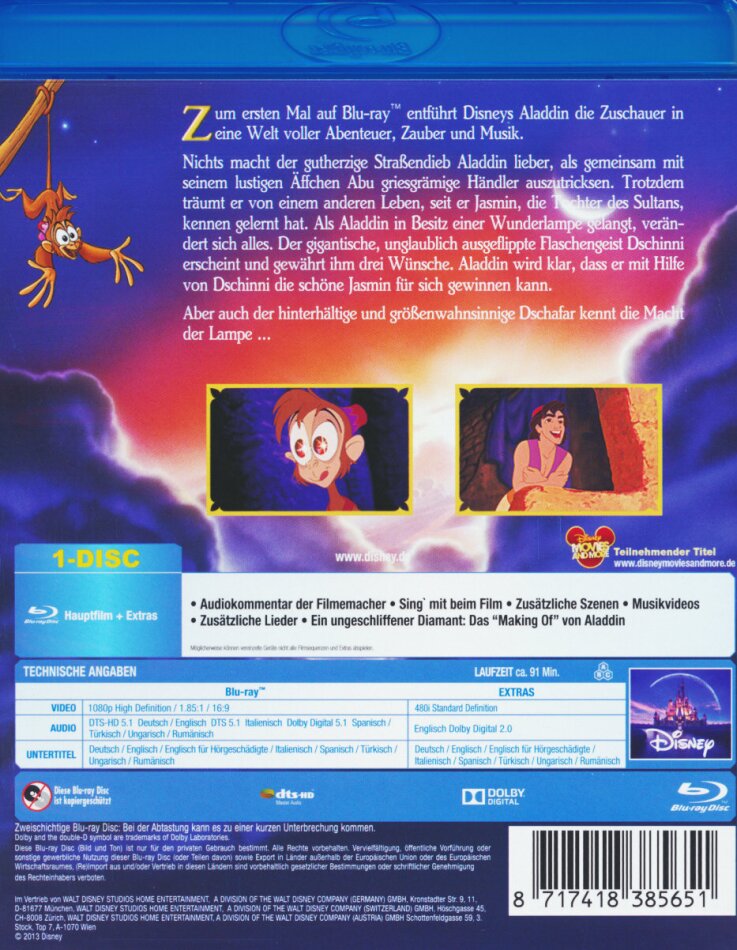 inhalt:Gift set includes 5 exclusive all-new sketches by the original animator, film frame from the movie, and a new "Aladdin" Special Edition book all enclosed in a slipsleeve case