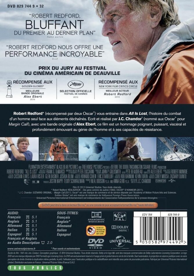 Je m'adresse donc à ceux-ci en les encourageant à regarder un film suffisamment courageux pour se passer de dialogues et d'autres personnages que l'unique à l'écran - allant plus loin, à cet effet, que Le Vieil Homme et la Mer avec Spencer Tracy - ainsi que des habituelles ficelles hollywoodiennes.