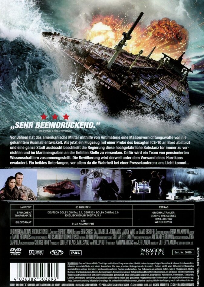 Bild ist ganz stark (finde ich immer wieder lustig dass die Billigproduktionen ein besseres Bild als die sogenannt "grossen" fertigbringen). Dann ist der Handlungsablauf recht zügig, sodass es einem nie wirklich langweilig wird. Extras: ein 11:30 minütige Making of und 4 Minuten Trailer (2 Trailer von Super Tanker, die soviel Material enthält, die im Film gar nicht vorkommen)